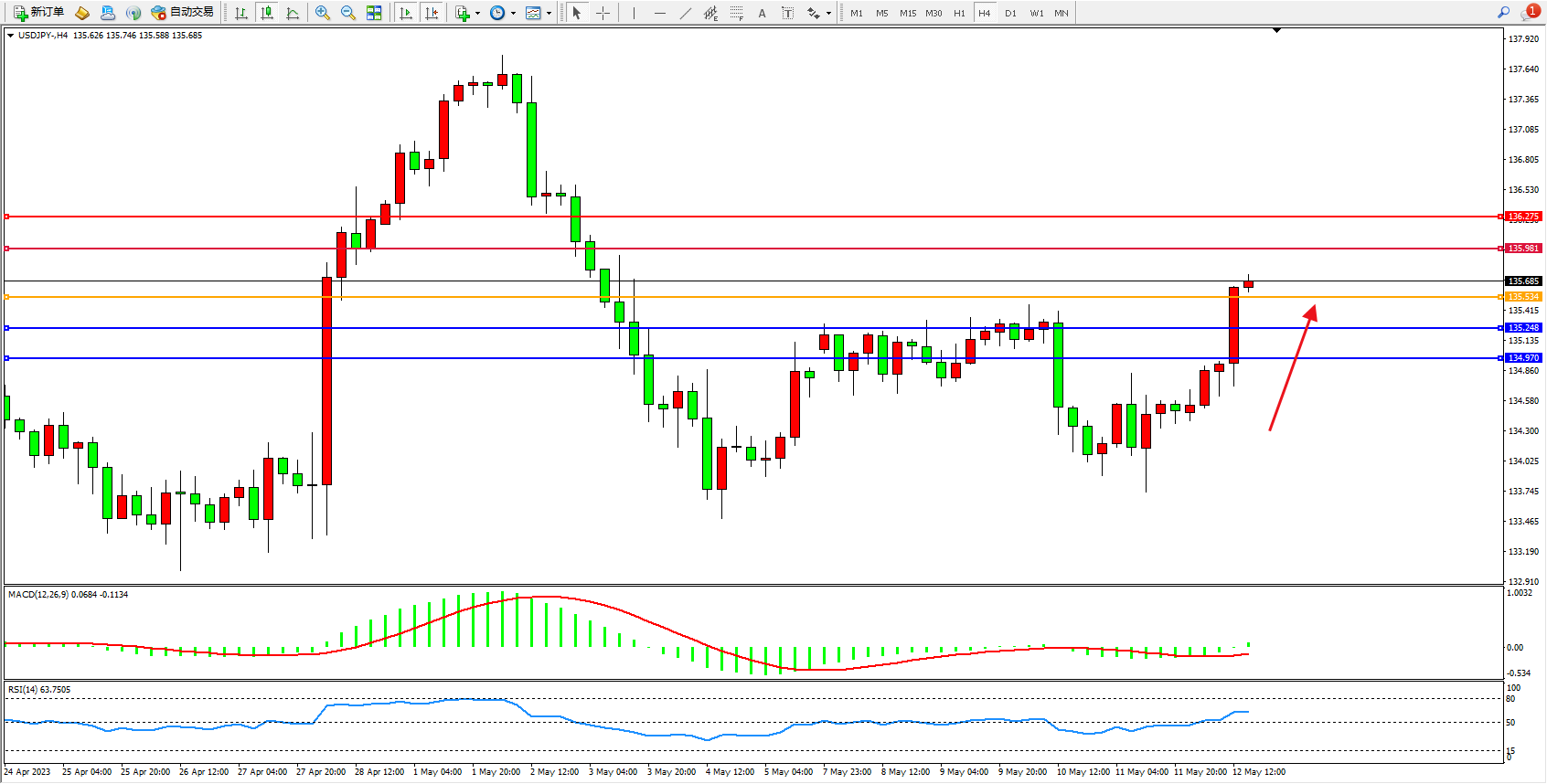 支撑位:135.248 134.970