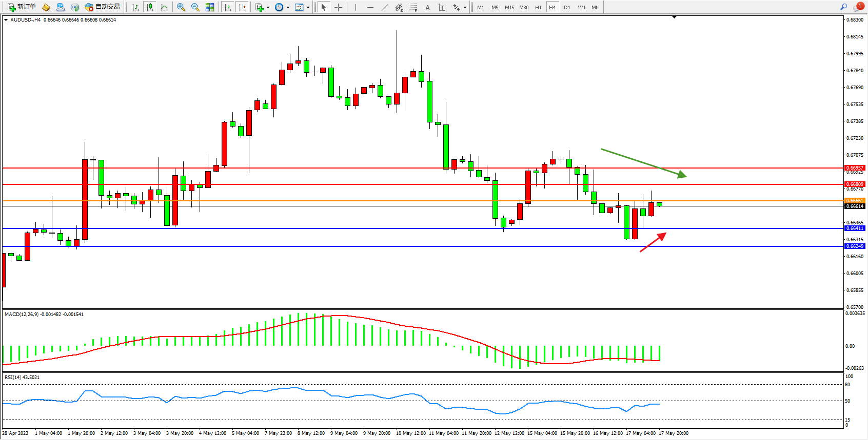 阻力位:0.66809 0.66957